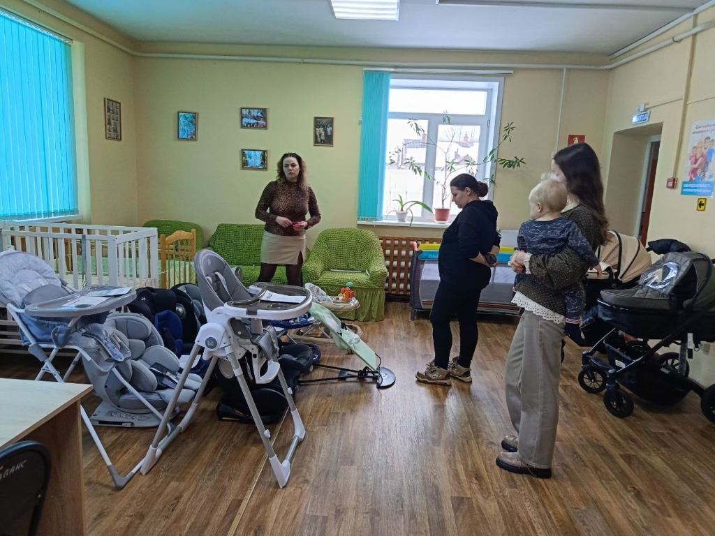 Участникам встречи продемонстрировали товары пункта проката для новорожденных.