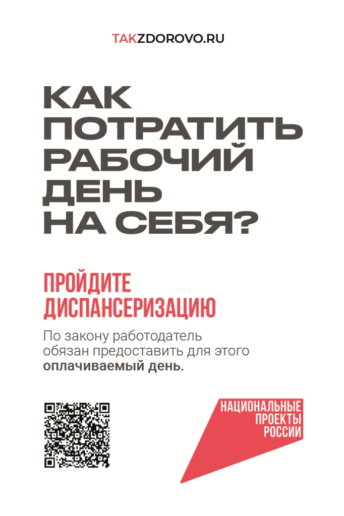 Для того чтобы убедиться, что все показатели здоровья в норме и не пропустить первые и скрытые признаки серьезных заболеваний Минздрав Новгородской области рекомендует бесплатно пройти диспансеризацию. Сделать это можно за один день в поликлинике по месту жительства. По закону работодатель обязан предоставить оплачиваемый выходной для диспансеризации.