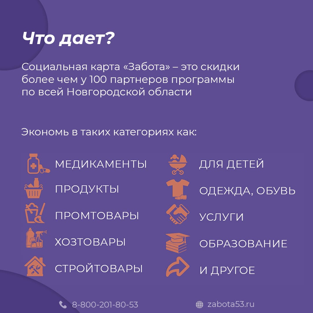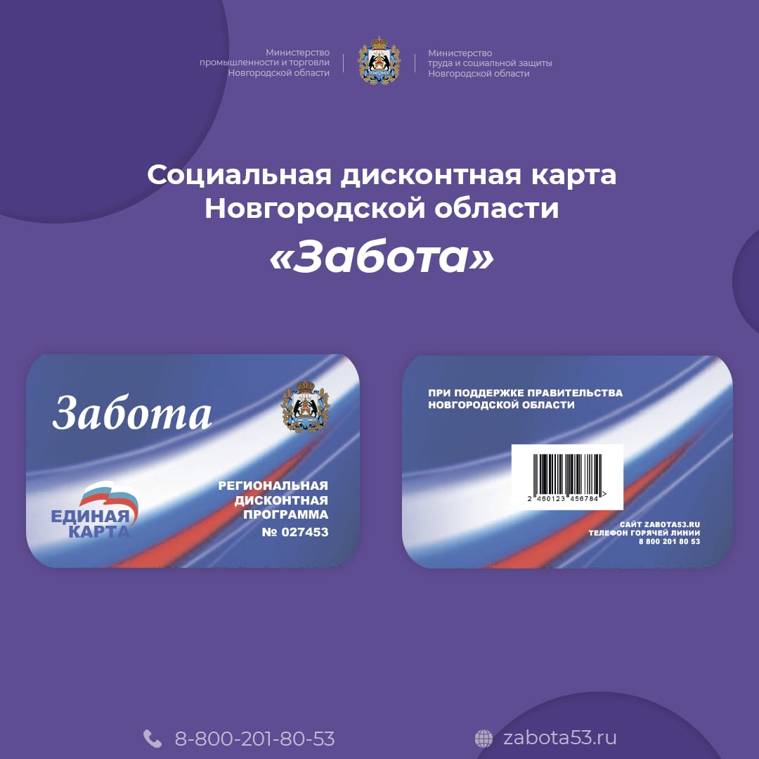 С 1 июля 2020 года на территории области реализовывается приоритетный региональный проект «Социальная дисконтная карта «Забота». Карта «Забота» введена в целях поддержки отдельных категорий граждан, обеспечения для них ценовой доступности товаров, работ и услуг за счет предоставления адресной системы скидок.