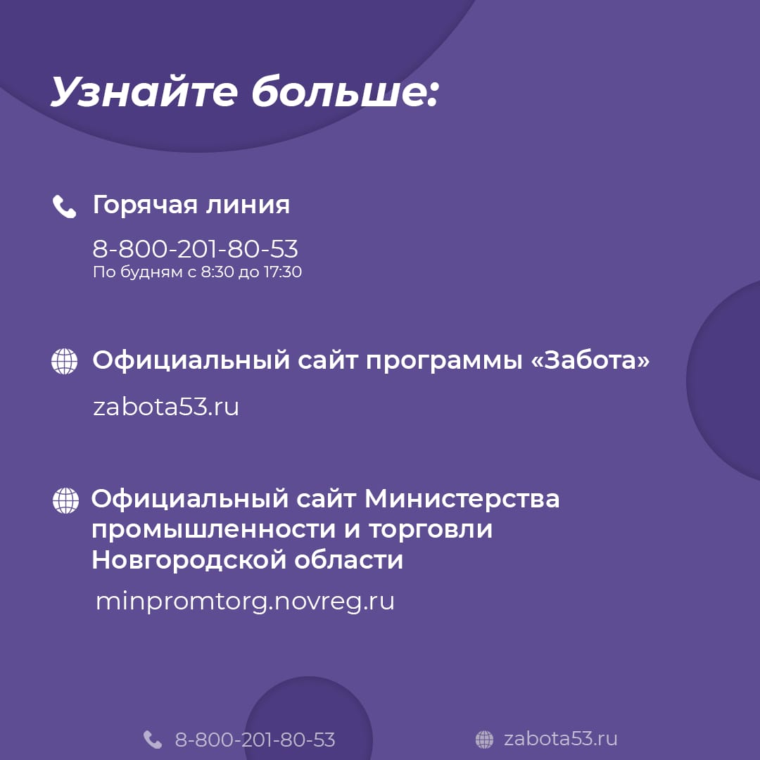 Консультацию по возникающим вопросам можно получить по телефону «горячей линии»: 8-800-201-80-53 либо в информационно-телекоммуникационной сети «Интернет», на официальном сайте: zabota53.ru