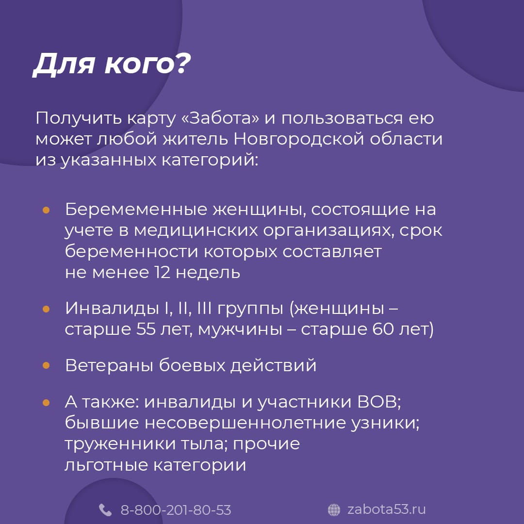 Карта «Забота» предоставляется гражданам, относящимся к следующим категориям: