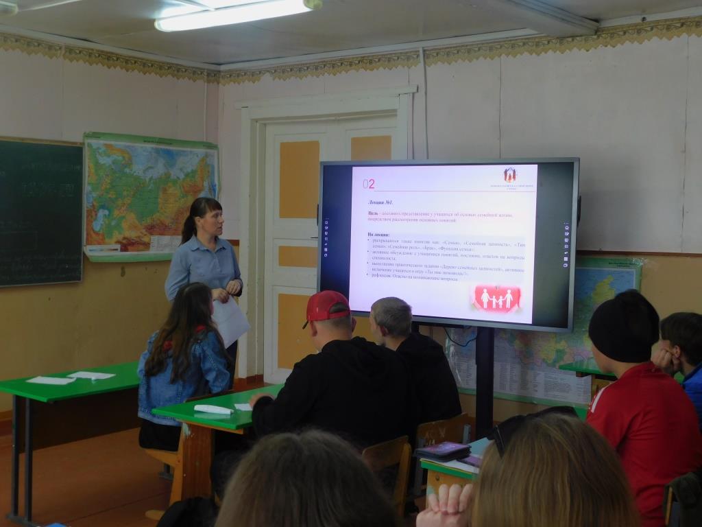 в Ореховской школе Мошенского района прошли первые лекции в «Школе подготовки к семейной жизни». Занятие состоялось в рамках приоритетного регионального проекта «Сохраняя жизни» с целью повышения значимости института семьи и формирования готовности к вступлению в брак, развития семейных отношений. Присутствовало 5 учащихся старших классов. Перед началом лекции ребята заполнили анкеты по программе курса лекций. Затем вместе обсудили, что такое семья, какие ассоциации возникают у них с этим словом. С целью поддержания внимания аудитории было проведено упражнение «Составь пословицу». Затем учащиеся познакомились с типами семьи, основными функциями семьи, ценностями семейной жизни. Было выполнено интересное практическое задание «Дерево семейных ценностей» и игра «Ты мне поможешь?». Далее ребята узнали основные этапы полного цикла функционирования семьи с учётом типичных задач развития, познакомились с мерами поддержки семей с детьми, дополнительными мерами поддержки. Также они делились своими мнениями о том, какие заповеди они бы рекомендовали для предотвращения конфликта в семье. С целью создания положительной атмосферы в группе и завершения тренинга было проведено упражнение «Зато ты…». Встреча закончилась с хорошим эмоциональным настроем на будущие встречи.