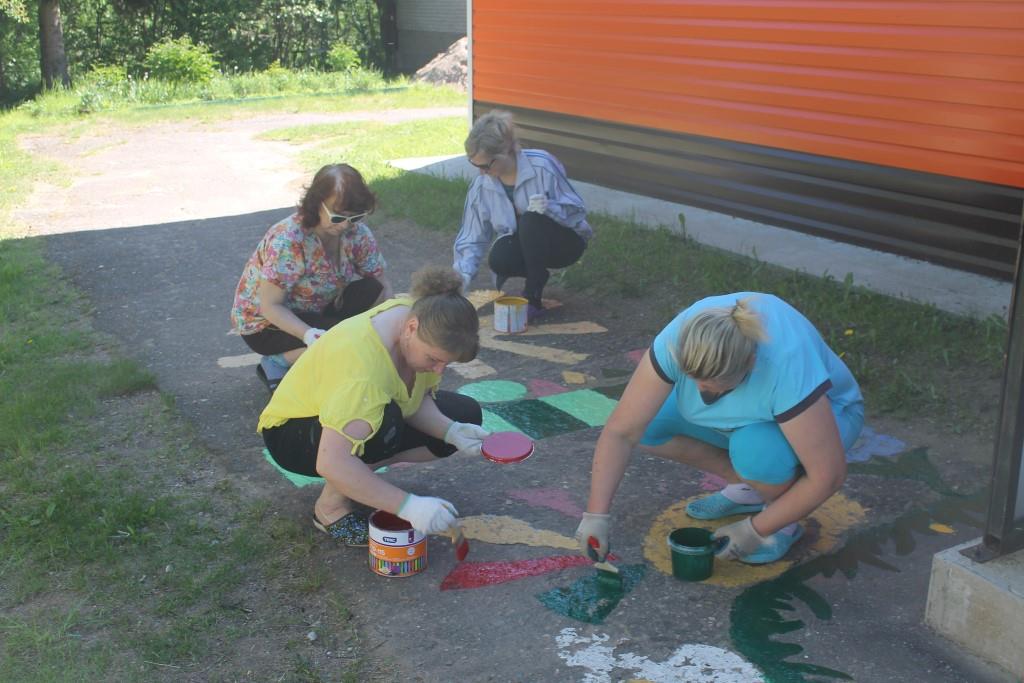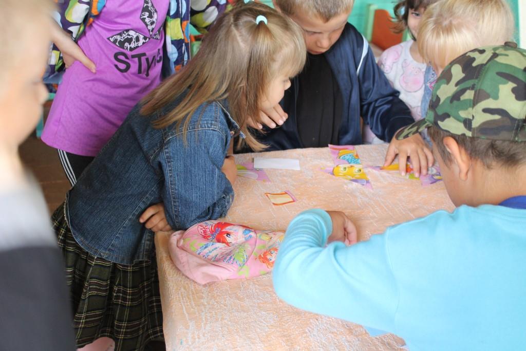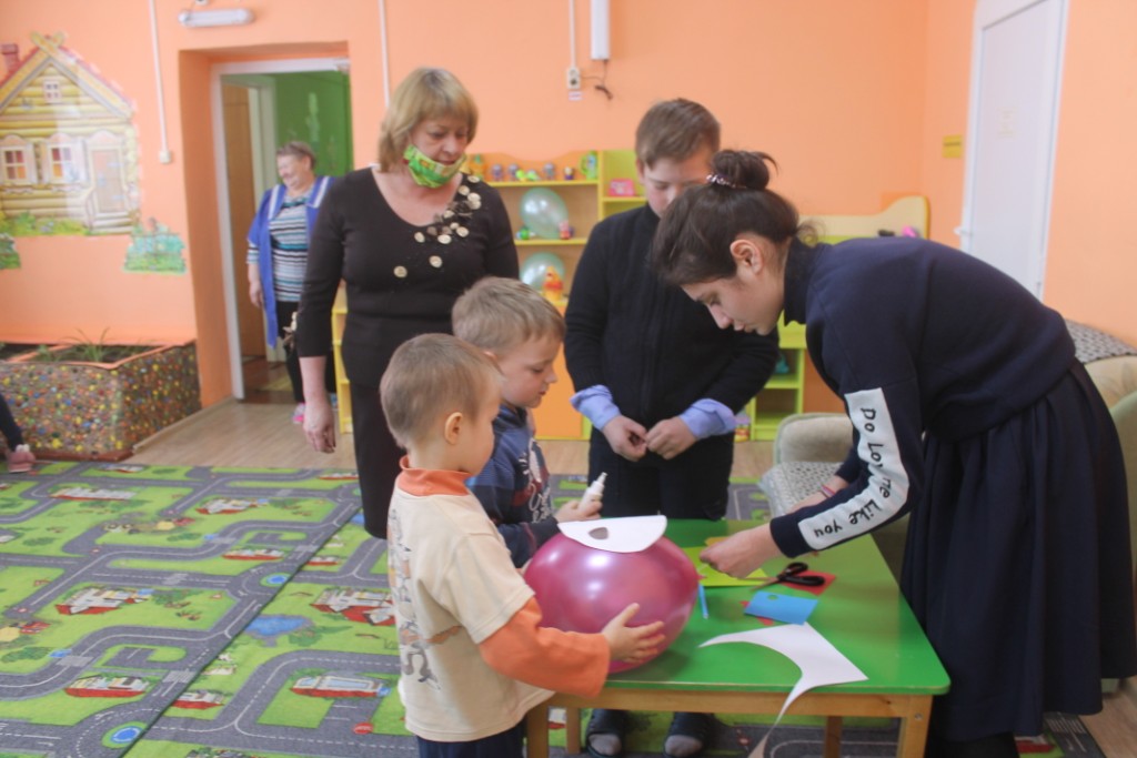 Затем началась развлекательная программа. В игре «Аппликация на воздушном шаре» предстояло вырезать и наклеить веселую рожицу.
