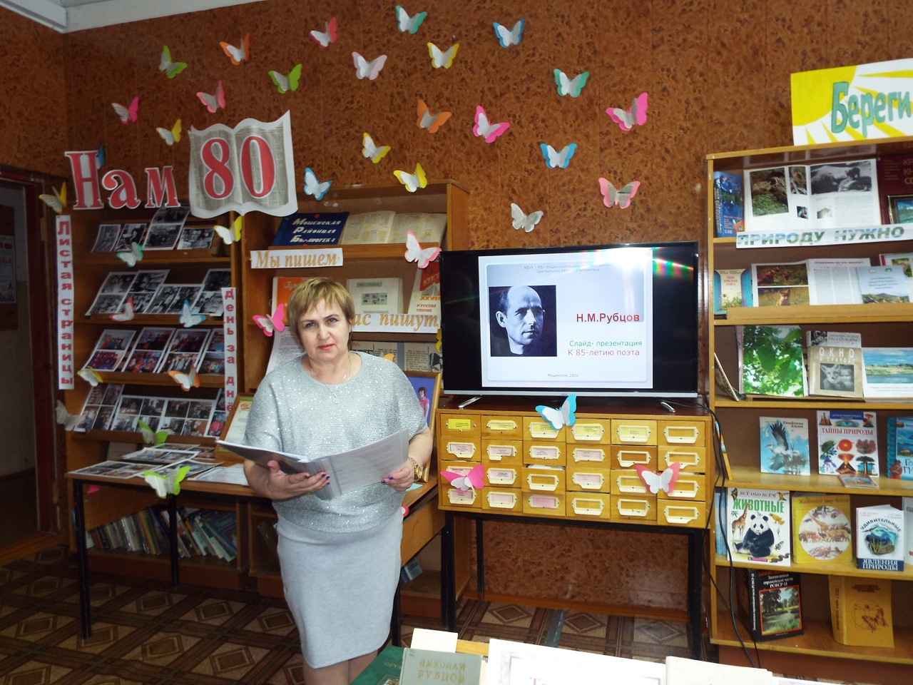 Рассказ шел о жизни и творчестве вологодского поэта Николая Рубцова. Николай Михайлович был «тихим лириком», не «жег глаголом», как поэты того времени Р.Рождественский, Белла Ахмадулина, Евгений Евтушенко. Рубцов любил свою Родину, деревню, простых людей. Ему характерны почти есенинские строки «Люблю твою, Россия, старину. Твои леса, погосты и молитвы».