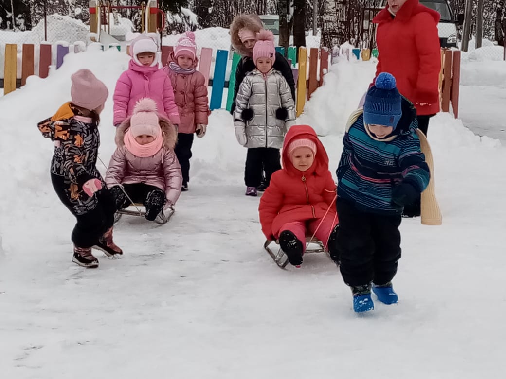 «Быстрые санки» оказались испытанием не из легких! Участникам команд предстояло перевезти друг друга.