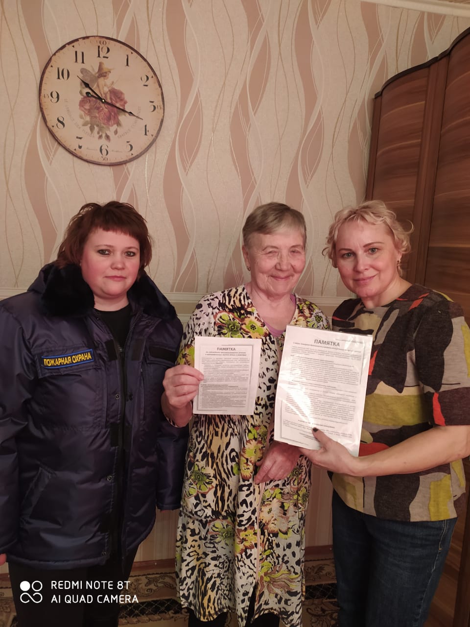 заведующие отделениями социального обслуживания на дому совместно с инструктором по пожарной профилактике 9-го отряда противопожарной службы с.Мошенское Мурашовой Марией Николаевной участвовали в рейде, в ходе которого посетили получателей социальных услуг на дому. Тема мероприятия – безопасность поведения в быту при ЧС (пожарная безопасность), в ходе рейда Мария Николаевна разъяснила обслуживаемым гражданам как вести себя при возникновении пожара. Гражданам выданы памятки по соблюдению противопожарного режима в индивидуальных жилых домах и квартирах и памятки о мерах пожарной безопасности в весенне-летний пожароопасный период.