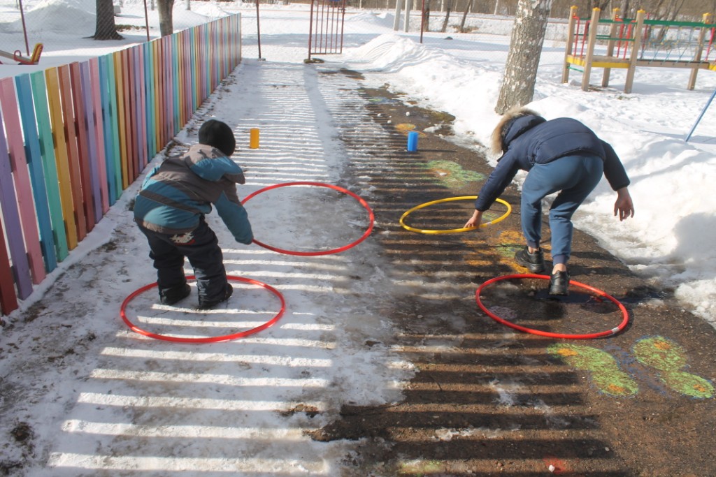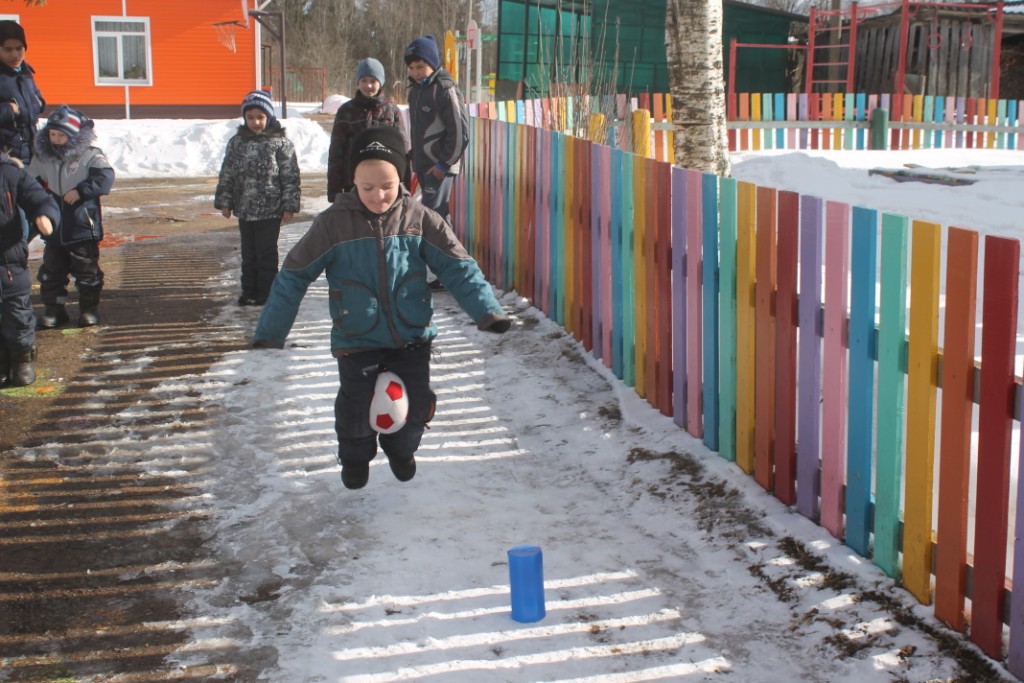 Ловкости и точности требовала от детей эстафета «Метание снежков», быстроты «Переправа», где с помощью 2 обручей участники добирались до цели.