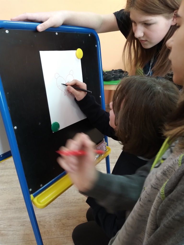 Веселым, забавным и озорным оказался конкурс «Юная художница», где надо было с закрытыми глазами, под диктовку ведущей нарисовать символа домашнего уюта – кота.