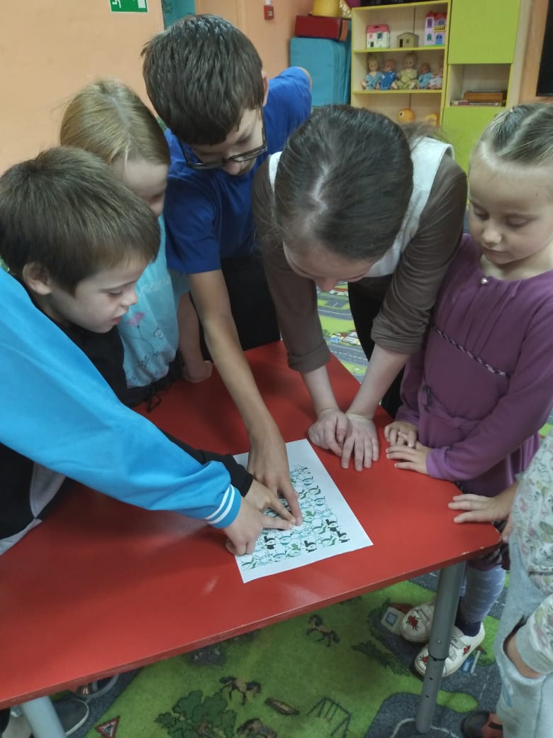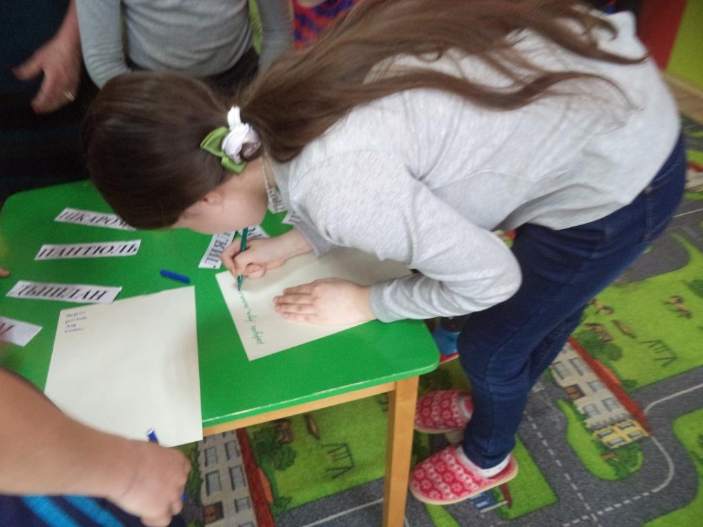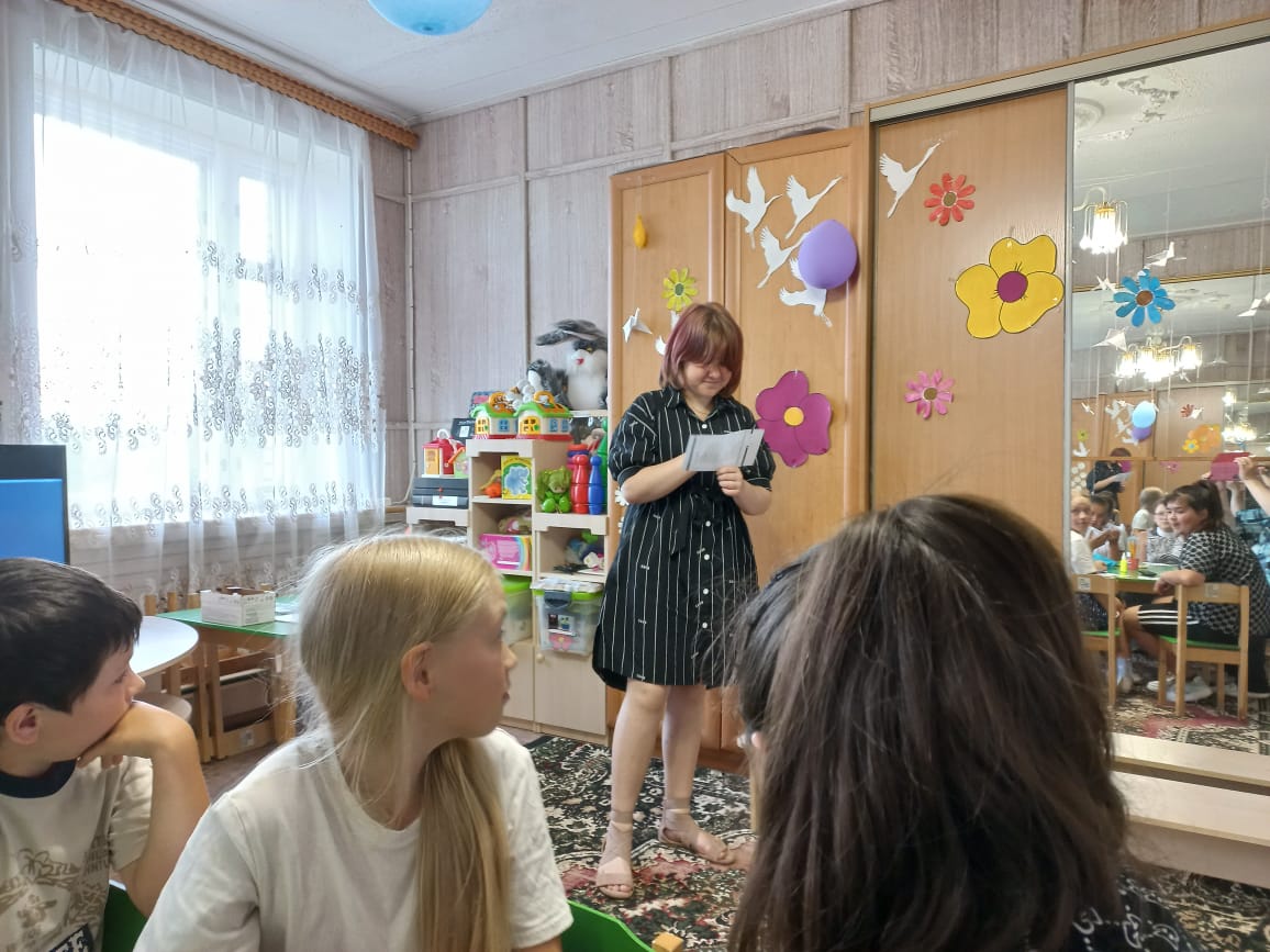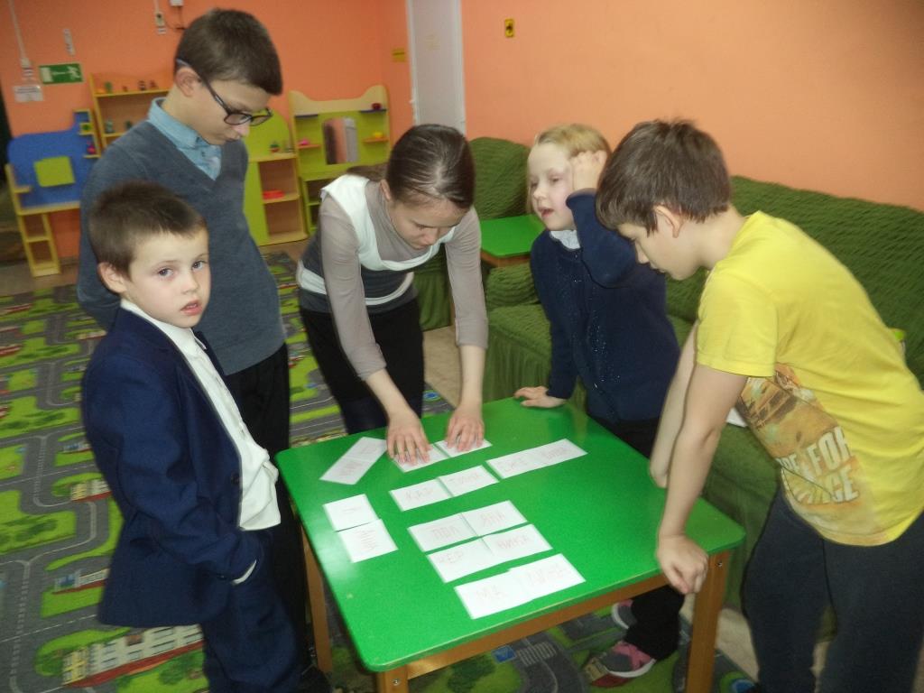 В завершении учебного дня школьникам надо было из карточек с буквами собрать слово «МОЛОДЦЫ». Команда, первая собравшая слово, могла бежать из «школы» «домой».