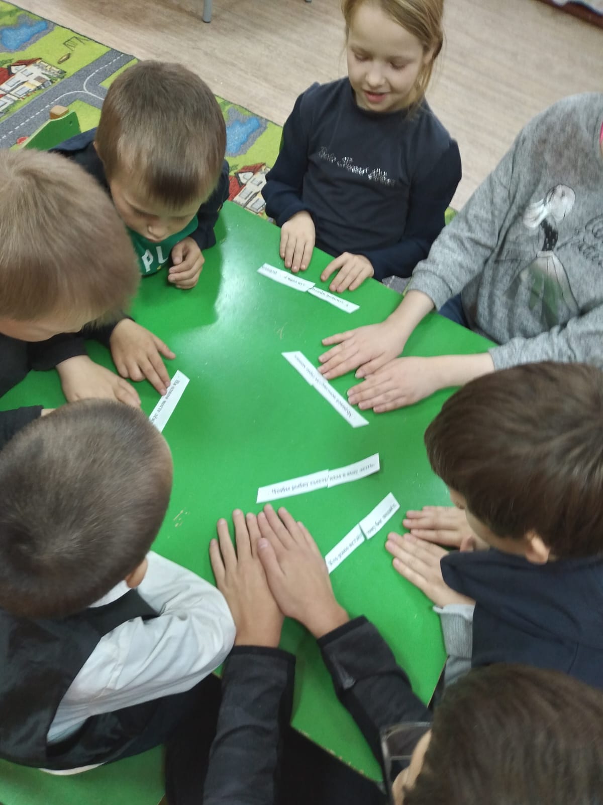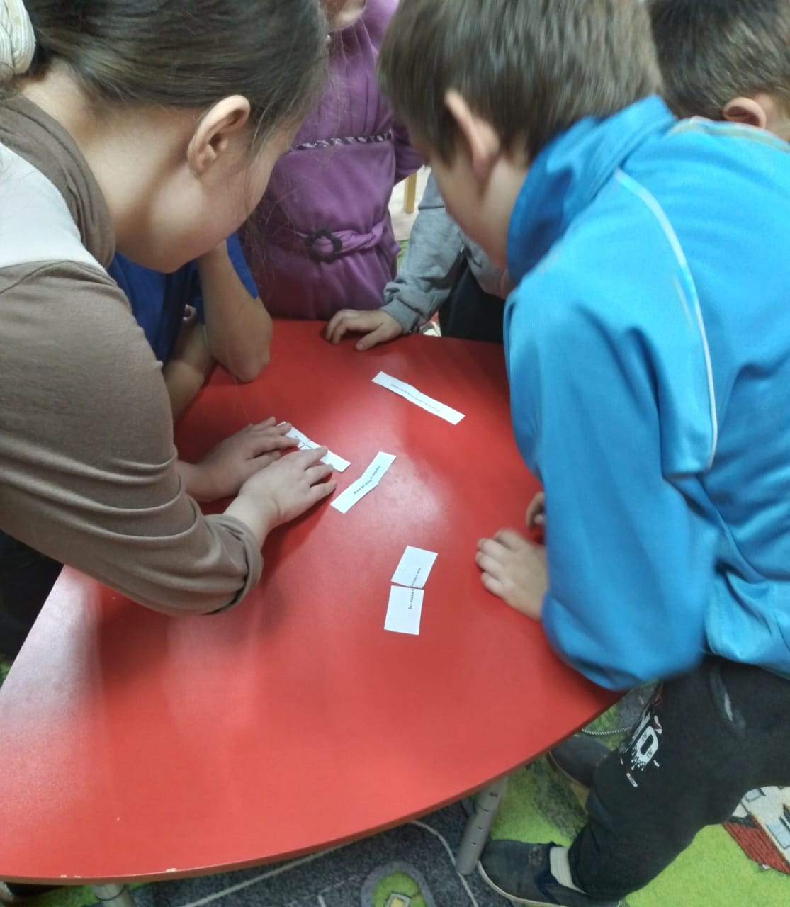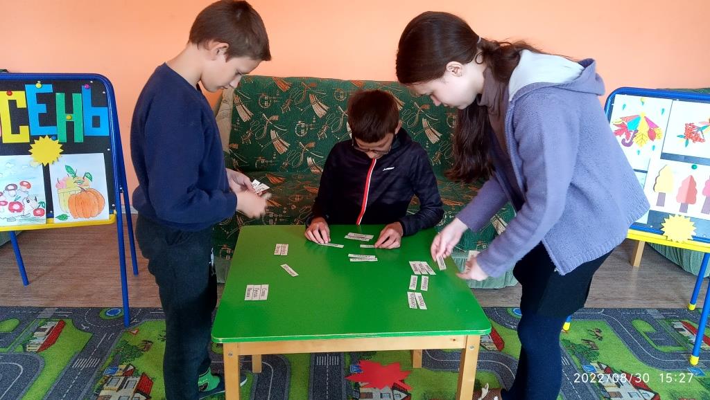 В завершении учебного дня школьникам надо было из карточек с буквами собрать слово «МОЛОДЦЫ». Команда, первая собравшая слово, могла бежать из «школы» «домой».