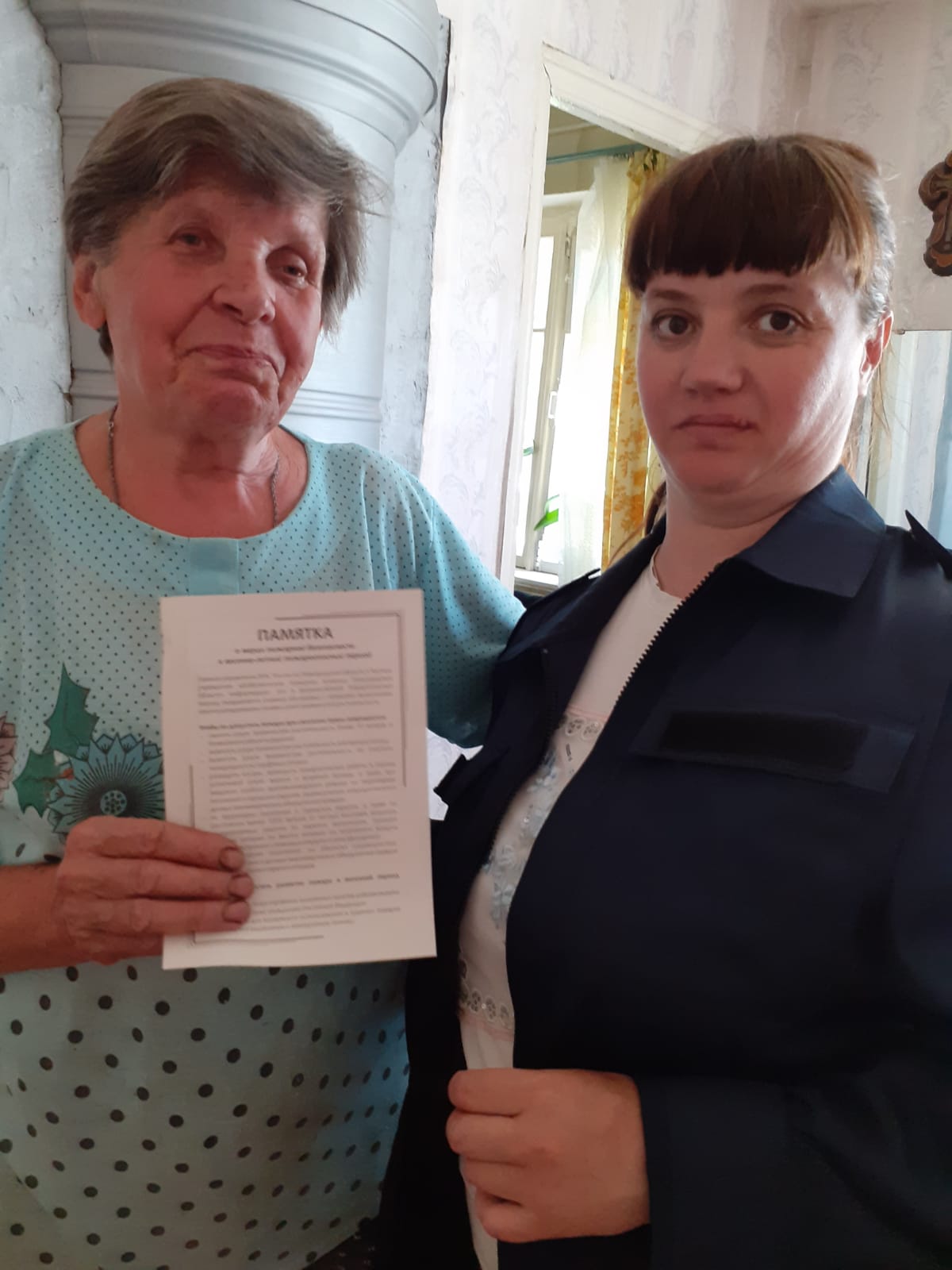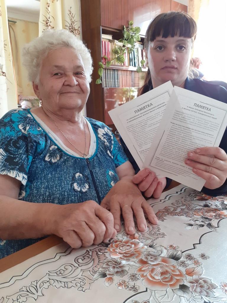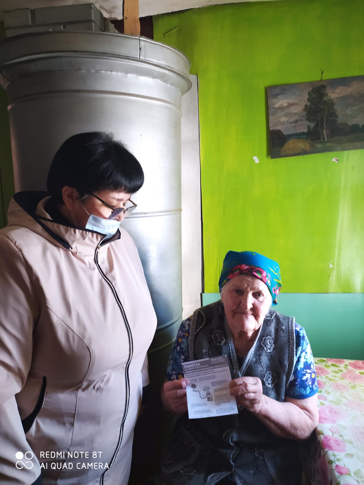 в целях обеспечения пожарной безопасности заведующим отделением комплексного центра социального обслуживания населения Луттэр Л.Б. проводятся индивидуальные профилактические беседы с получателями социальных услуг о мерах пожарной безопасности в весенне-летний пожароопасный период. Особое внимание уделяется гражданам, проживающим в домах с печным отоплением. В ходе проведения беседы со своими подопечными, Лариса Борисовна рассказывает о профилактике недопущения пожара, безопасности пользования электроприборами, печами и другими отопительными приборами, недопущении использования открытого огня, являющимися частой причиной пожара и гибели людей, знакомит с правилами поведения при возникновении пожара и напоминает телефоны экстренного реагирования. В конце беседы всем обслуживаемым гражданам раздает листовки и памятки на противопожарную тематику.