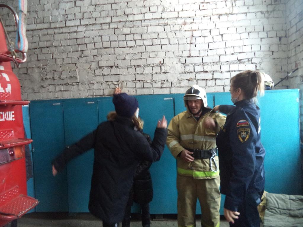 Инструктора по пожарной безопасности, командир взвода провели для детей увлекательную экскурсию, показали здание и помещения, рассказали, как осуществляется вся работа, кто первым принимает вызов и кому дальше передает сигнал. Показали ребятам спецодежду и спецмашины, сравнили спецтехнику, которая была в начале прошлого столетия, с современной.