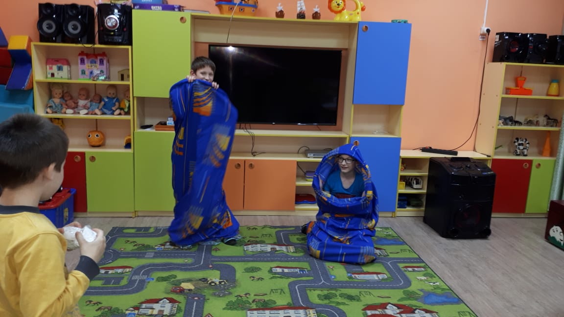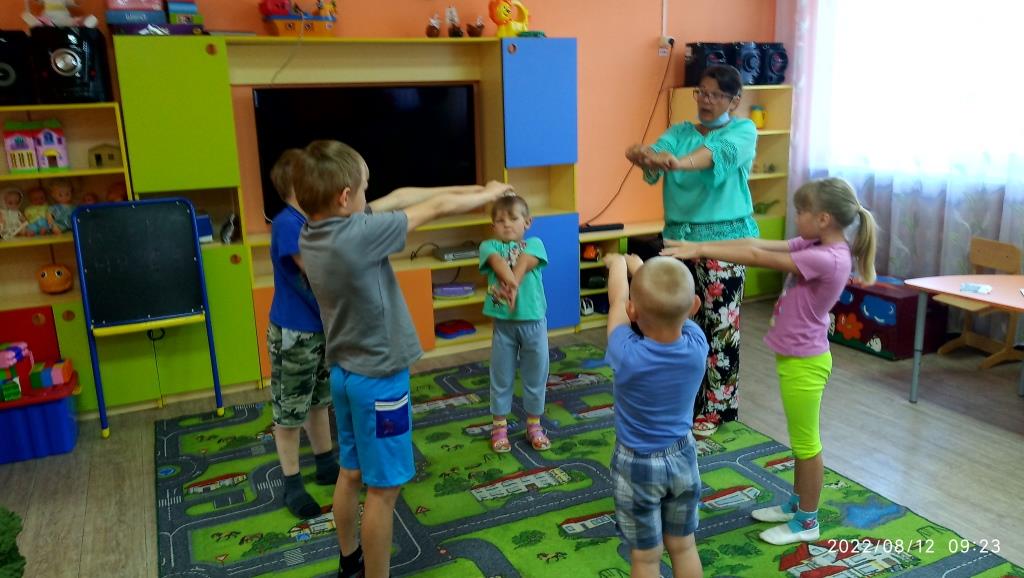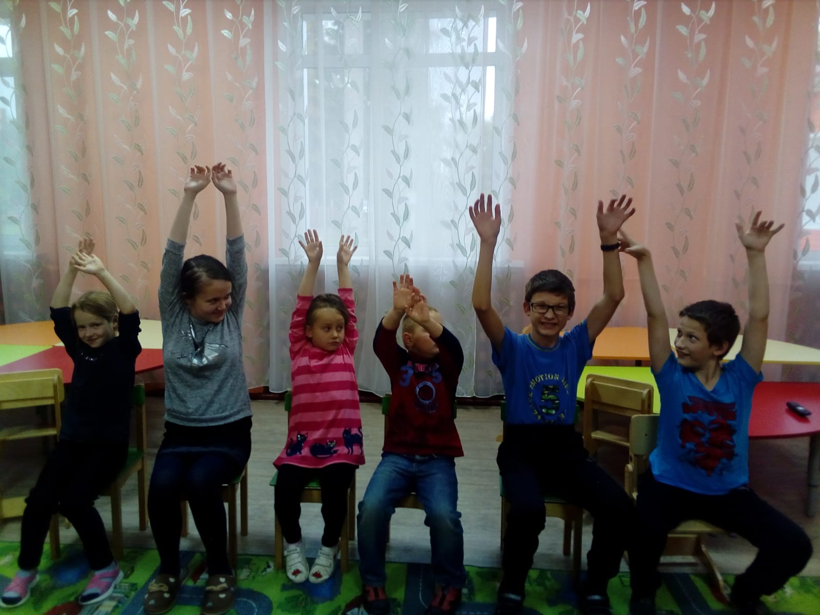 В заключение выполняли движения по зачитанному тексту в игре «Мартышки».