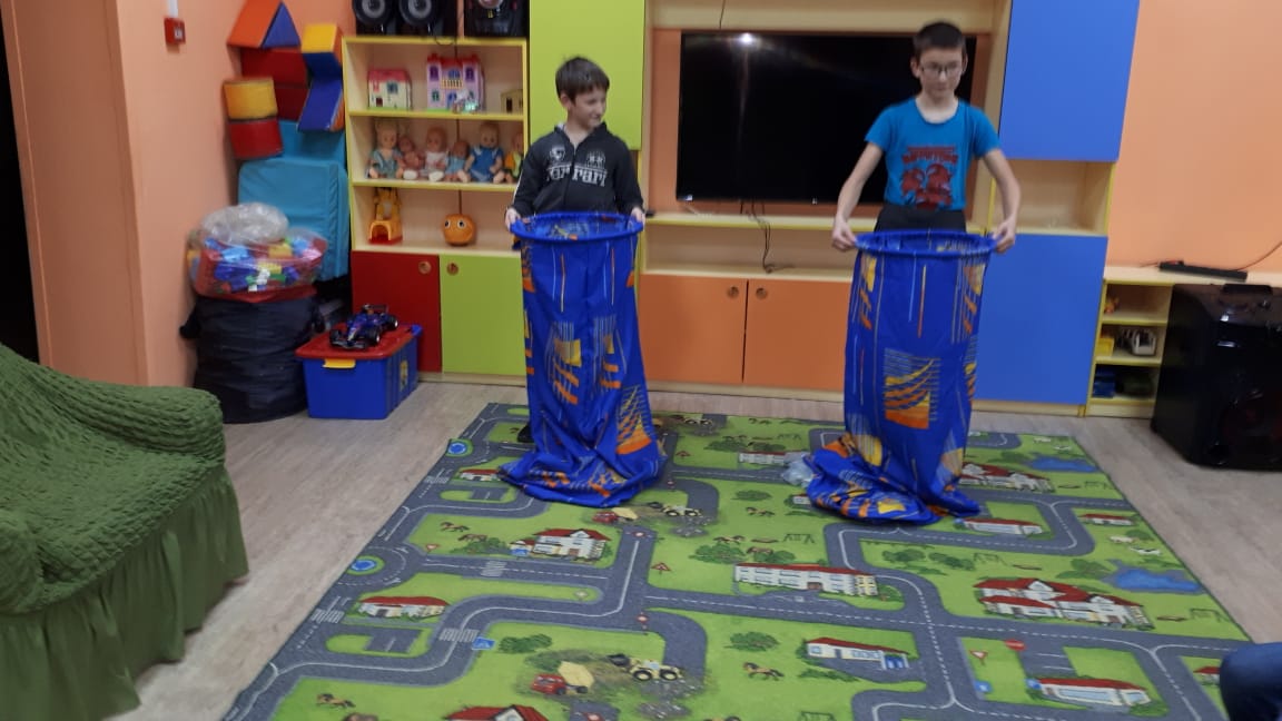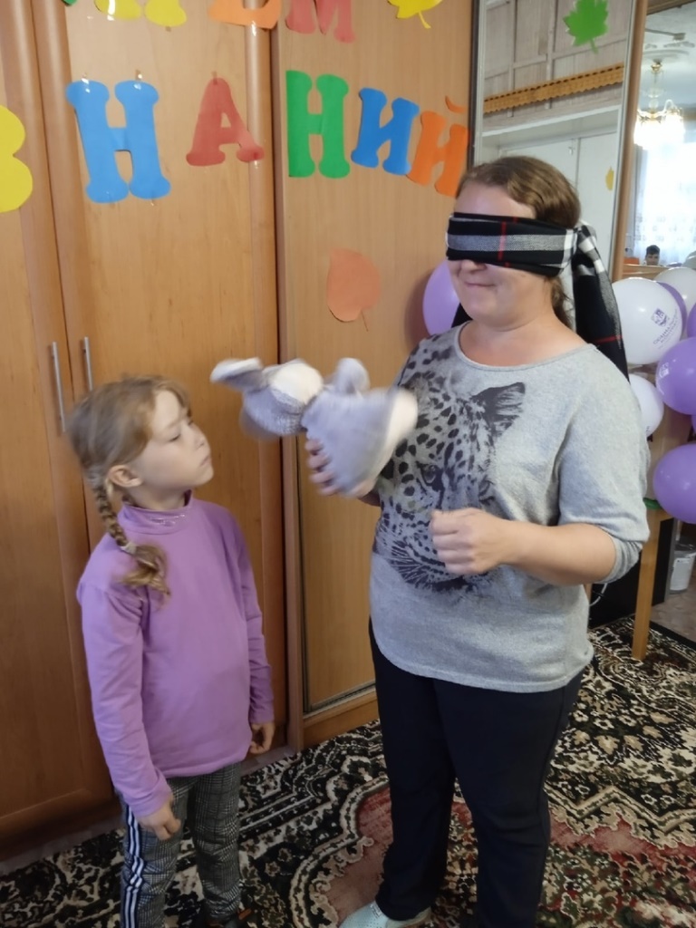 С завязанными глазами под музыку ребята собирали «Новогодние мешочки». Выигрывал тот, у кого оказалось больше новогодних предметов.