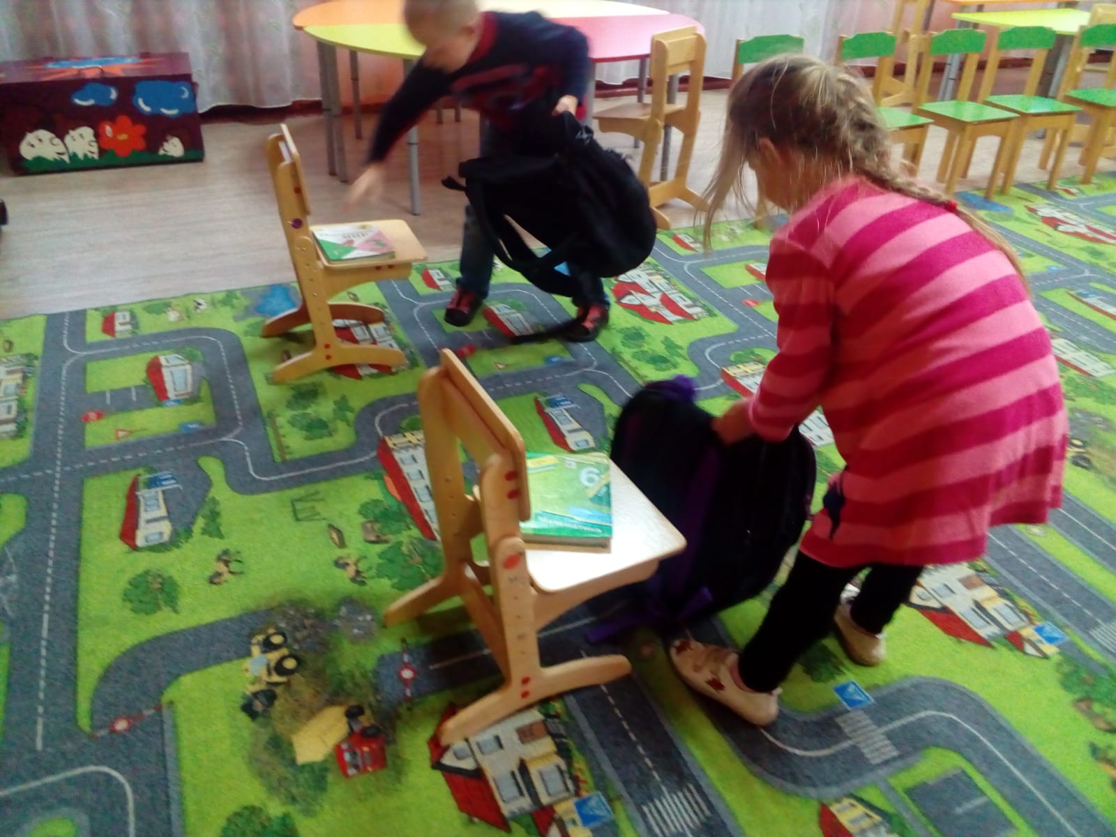 Какая же школа без переменок! Они тоже были необычными: собирали школьный портфель, поиграли в игру «Совушка», выполнили зарядку под стихотворение.