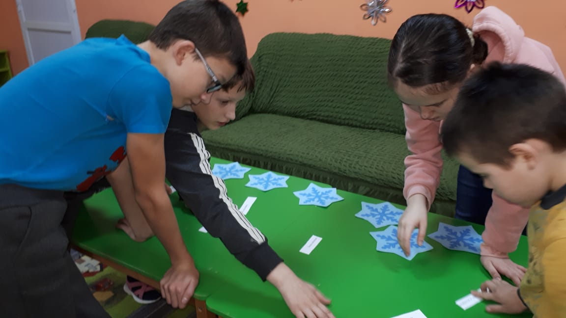 Зима – самое чудесное, волшебное время для всех. И наша программа началась с необычного снегопада, который устроила Зимушка-Зима. Снежинки, которые оказались перед ребятами, были с сюрпризом: на каждой было зимнее задание.