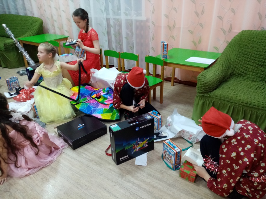 24 декабря 2022 года к ним приехал настоящий Дед Мороз, который поздравил всех с наступающим Новым годом и исполнил их желания. Каждый ребенок получил то, о чем мечтал: ватрушки, домик для Барби с мебелью, смарт-часы, музыкальную колонку.