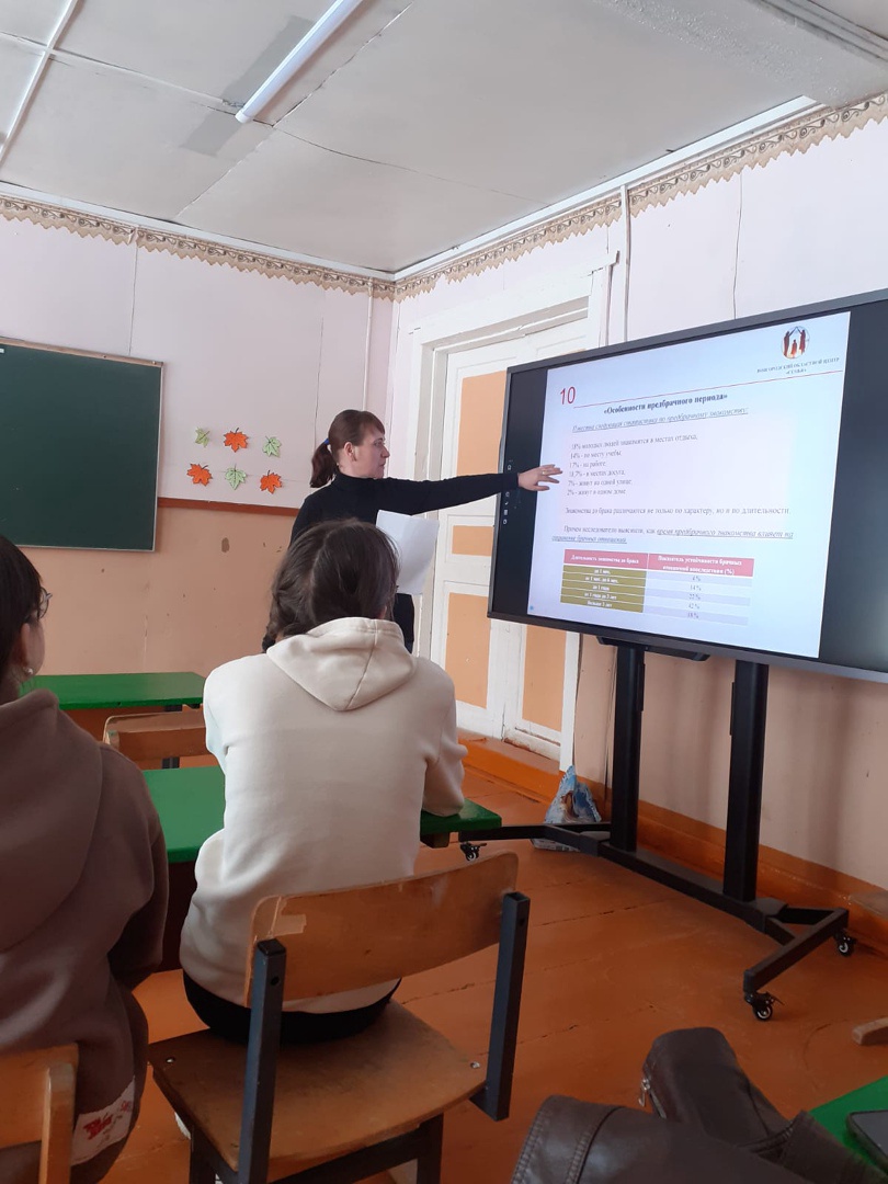 Сегодняшний день, 8 апреля 2022 года, оказался насыщенным и плодотворным для старшеклассников МАОУ СШ д.Броди. Психолог ОАУСО"Мошенской КЦСО" Андреева Е. провела для ребят лекции по программе курса внеурочной деятельности " Школа подготовки к семейной жизни".