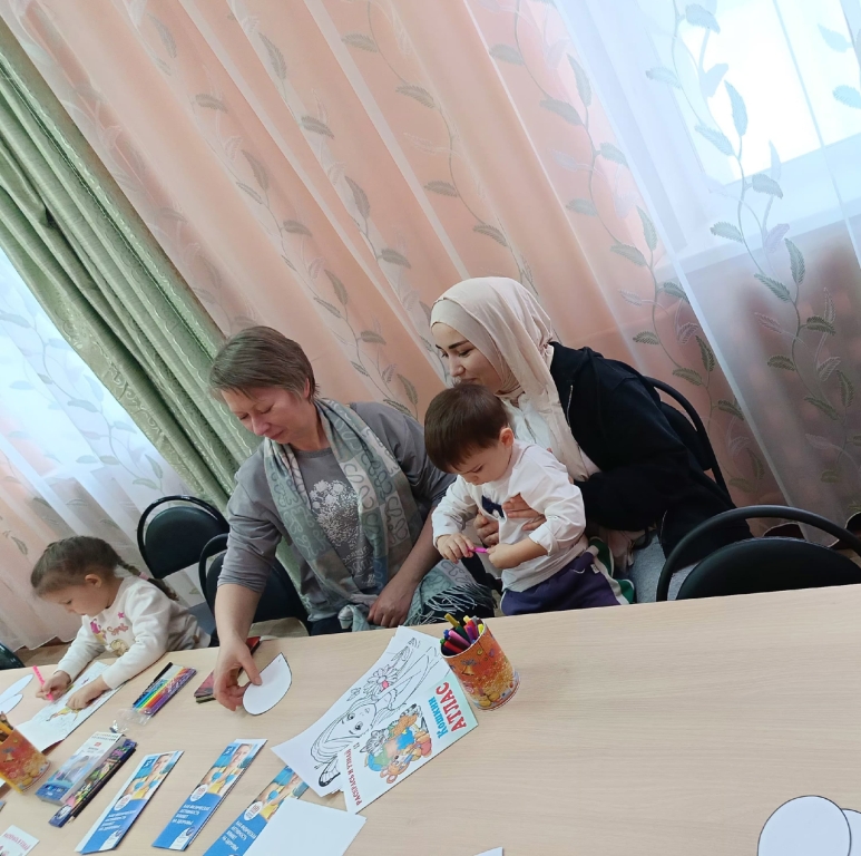 Мероприятие началось со знакомства, каждая женщина рассказала о своей семье, увлечениях. Поговорили об инновациях в уходе за детьми, поиграли в игры, уделили внимание здоровью семьи, выдали буклеты "Как физическая активность влияет на здоровье", обсудили меры социальной поддержки для семей с детьми. Особый интерес вызвал Пункт проката для новорождённых.