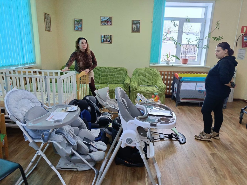 Участникам встречи продемонстрировали товары пункта проката для новорожденных.